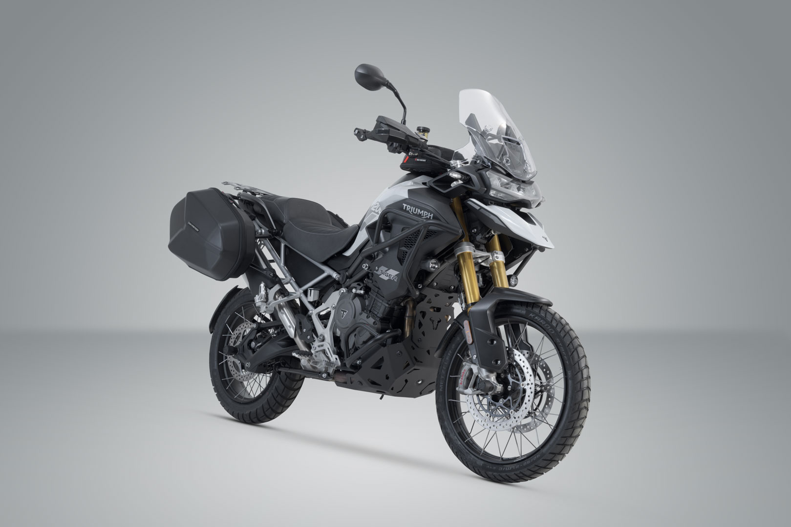 Das AERO ABS Seitenkoffer-Set besteht aus den passenden PRO Seitenträgern für die Triumph Tiger 1200 Modelle und den zwei Kunststoffkoffern.