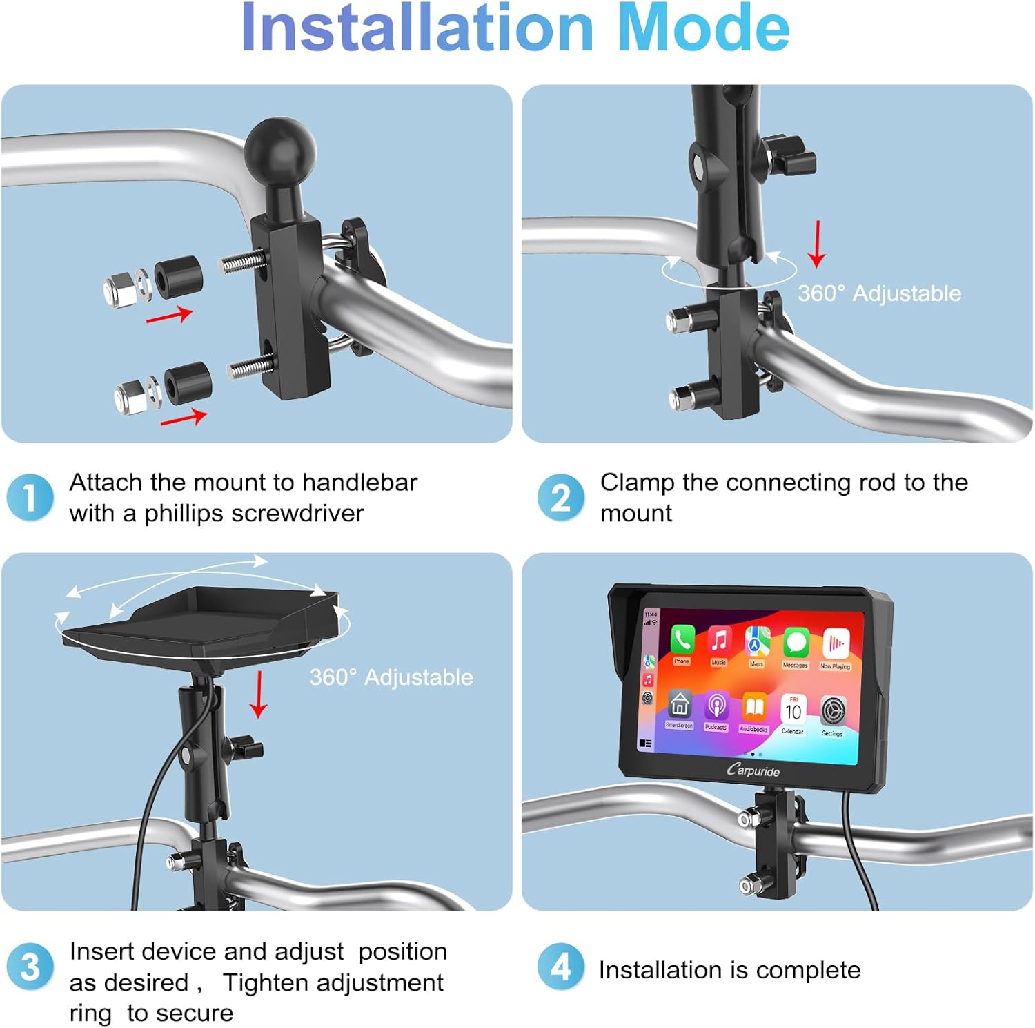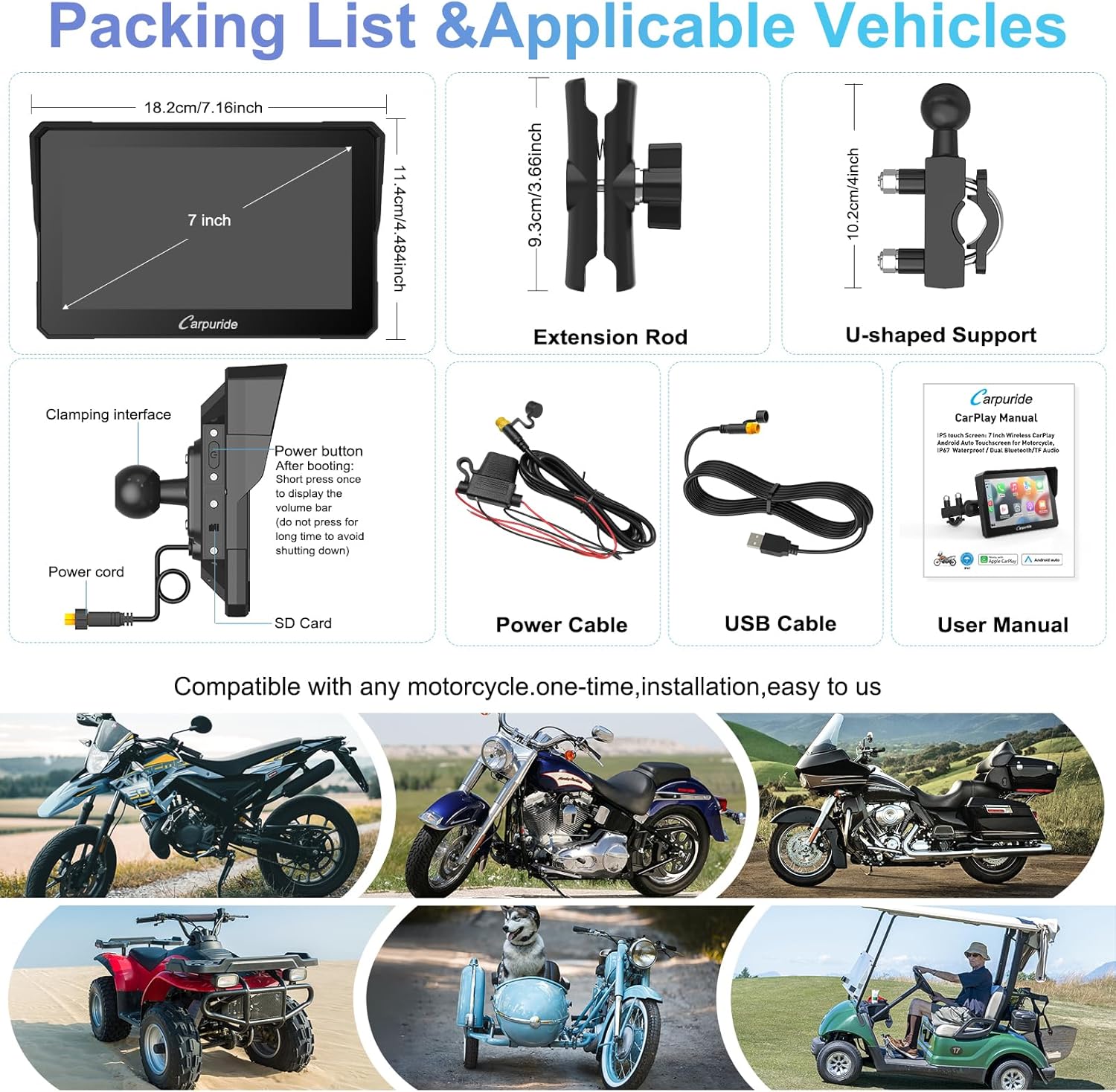 - Lieferumfang: 1 x Gerät W702 für Motorrad, 1 x Stromleitung, 1 x U-förmige Unterstützung, 1 x Verlängerungsstange, 1 x Bedienungsanleitung,1x USB Kabel. Kompatibel mit den meisten iOS-/Android-Smartphones, iPhone-Telefone müssen iPhone 6 oder höher sein, Android-Telefone müssen Android 11 oder höher sein.