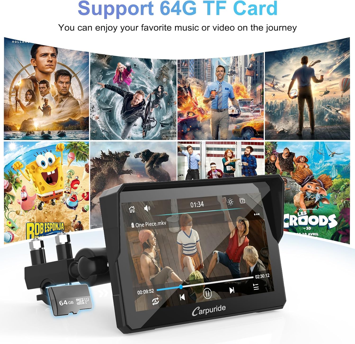 Carpuride W702 Motorrad Carpaly ist mit einem 7 Zoll High-Definition-IPS-Touchscreen mit einer Auflösung von 1024 x 600 ausgestattet, der den visuellen Effekt intuitiver und die Berührung reaktionsschneller macht. Lebendige 65K Farbe und bis zu 1000nit Spitzenhelligkeit, bieten klare, genießen Sie ein fantastisches Seherlebnis auch bei hellem Sonnenlicht im Freien,und unterstützen 64G TF-Karten.