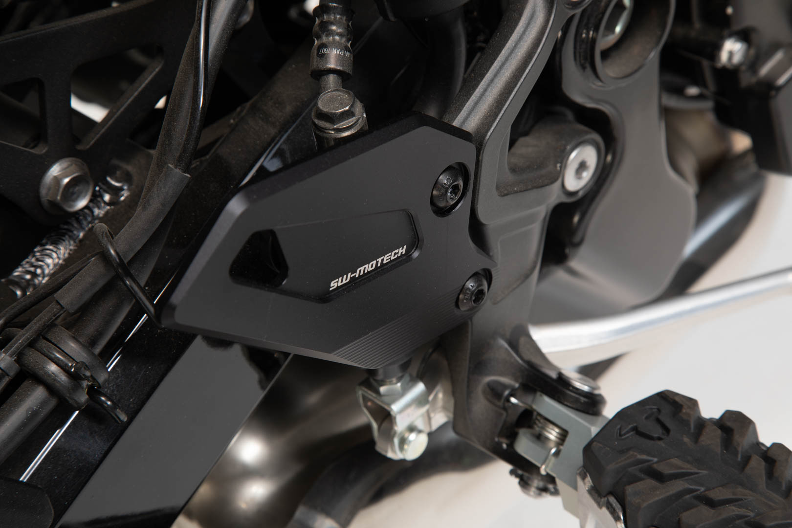 Gut geschützt: Dieser Fersenschutz verhindert das Touchieren des heißen Auspuffs oder der Kette und schützt vor den Bewegungen der Schwinge.