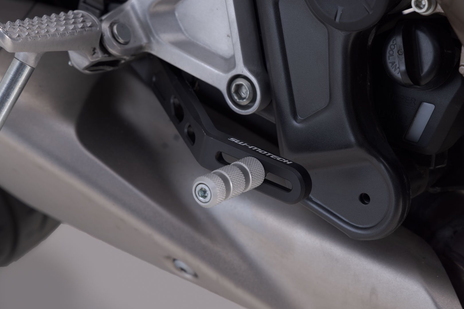Der verstellbare Fußbremshebel aus hochwertig gefrästem Aluminium mit HART-COAT® Beschichtung ermöglicht eine bessere Bedienbarkeit und Dosierung der Bremse. Der SW-MOTECH Fußbremshebel ist auf einer Länge von 5 cm einstellbar, dadurch passt er zu jedem Fuß und zu jedem Fahrstil. Die Rändelungen des Auftritts erhöhen die Griffigkeit und sorgen für verbesserte Stabilität beim sportlichen Fahren und längeren Touren. Mit dem separat erhältlichen Adventure-Auftritt verbesserst du das Handling der Fußbremse insbesondere beim Offroad-Fahren im Stehen.