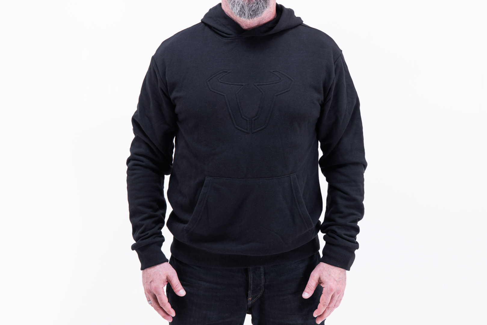 Der Kapuzenpullover überzeugt mit minimalistischem Design und einem schwarz geprägtem Bullen-Logo auf der Brust. Auf die Bändel haben wir verzichtet, die stören dich beim Motorradfahren ohnehin nur. Ein kleines Logo am Saum rundet das Gesamtbild ab. Dank des schlichten Designs lässt sich der Hoodie perfekt mit verschiedenen Looks im Alltag kombinieren.