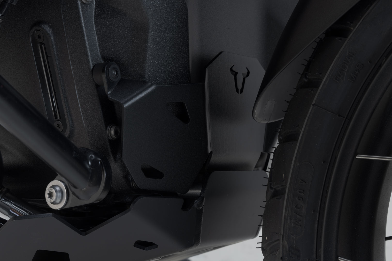 Die Motorschutz-Verlängerung schützt den vorderen Bereich des Motorblocks vor Steinschlag. Der Protektor aus gebürstetem und pulverbeschichtetem Aluminium kann nur montiert werden, wenn der SW-MOTECH Motorschutz ebenfalls montiert ist.