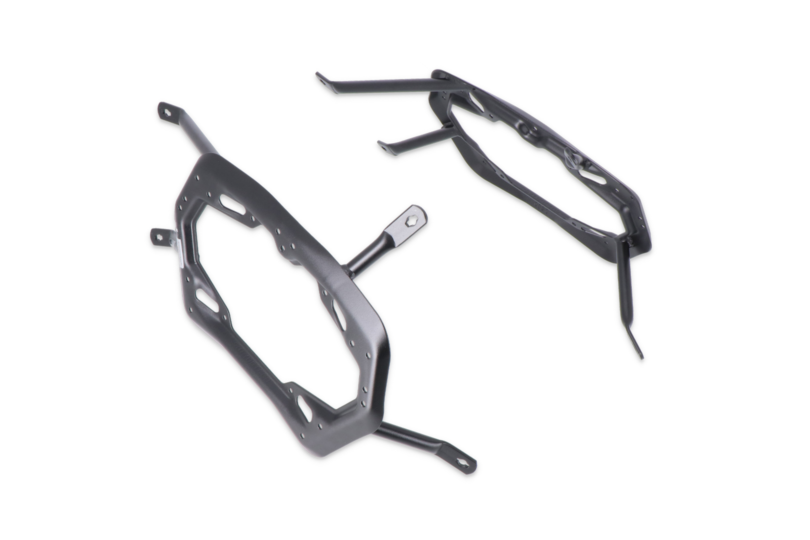 Der PRO Seitenträger gibt Seitenkoffern sowie der SysBag WP L sicheren Halt – die passenden Adapterkits sind separat erhältlich. Die zahlreichen Funktionsbohrungen des PRO Seitenträgers erlauben die Befestigung von anderem Zubehör.