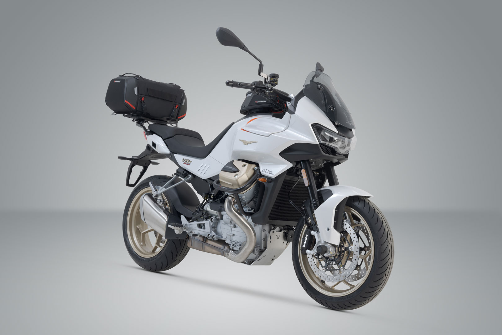 Diese Kombination aus Hecktasche und Gepäckträger haben wir passend für die Moto Guzzi V100 Mandello/S zusammengestellt. Das modellspezifische STREET-RACK mit Erweiterung bietet die optimale Auflagefläche für die PRO RACKPACK Hecktasche.