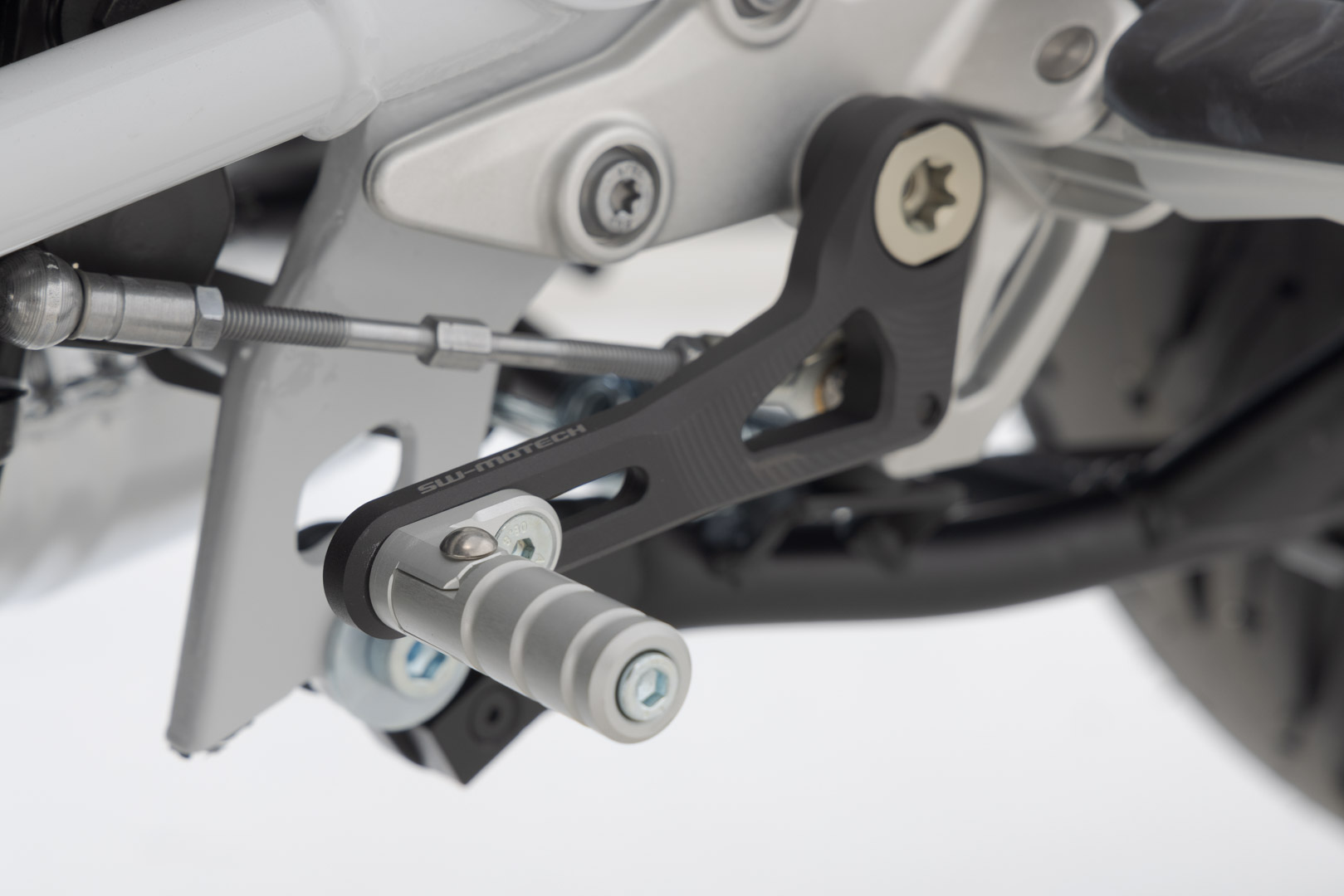 - Einstellbereich des Abstands zwischen Auftritt und Schaltwelle beim SW-MOTECH Schalthebel: 70 – 124 mm