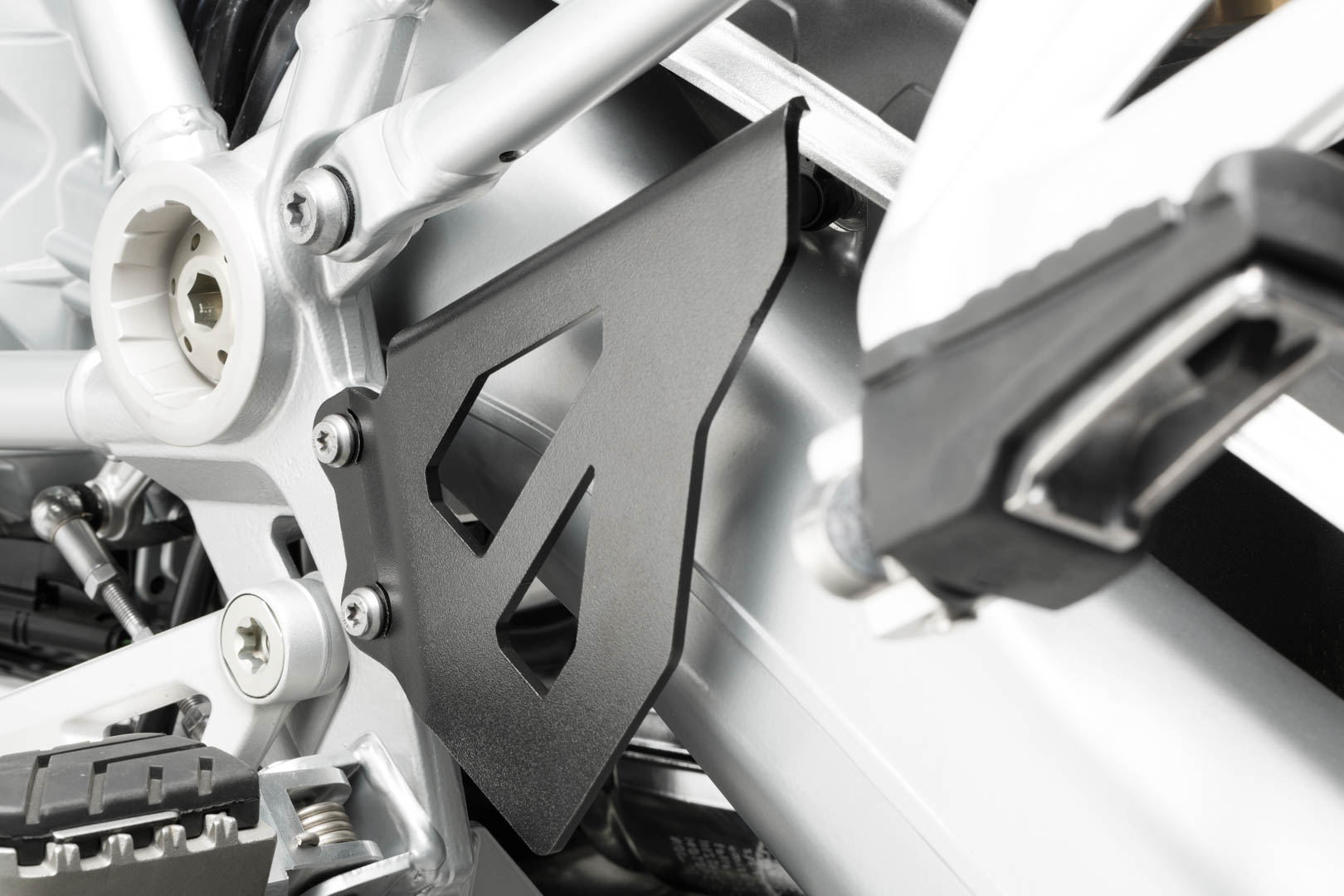 Das Schutz Set enthält passend für die BMW R1200GS / R1250GS die folgenden Anbauteile: 2x Krümmerschutz, Bremspumpen-Schutz und Bremsflüssigkeitsbehälter-Schutz.