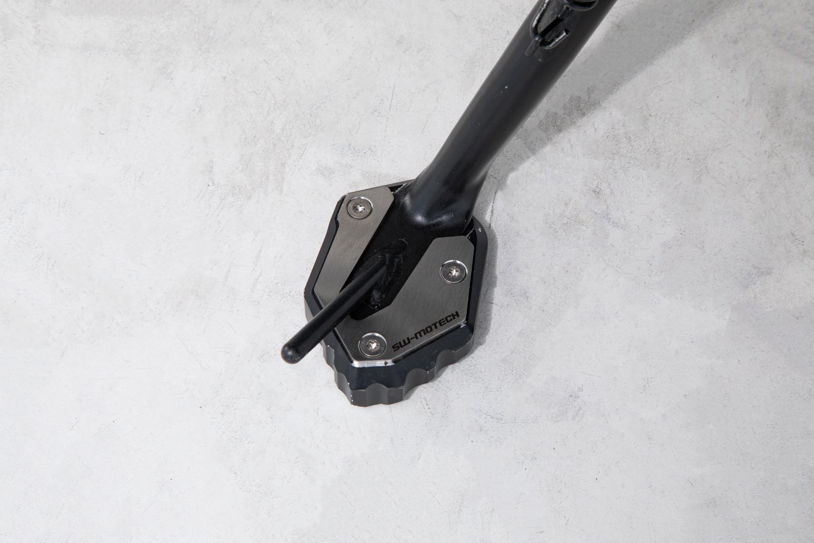 Die großzügige Auflagefläche der robusten Fuß-Verbreiterung bietet sicheren Stand auch auf unebenem Boden und weichem Untergrund. Passgenauigkeit und leichtes Handling im Fahralltag standen bei der Produktentwicklung gleichermaßen im Fokus. Die profilierte Oberseite der Fuß-Verbreiterung erleichtert das Ausklappen des Ständers – auch mit schweren Stiefeln.