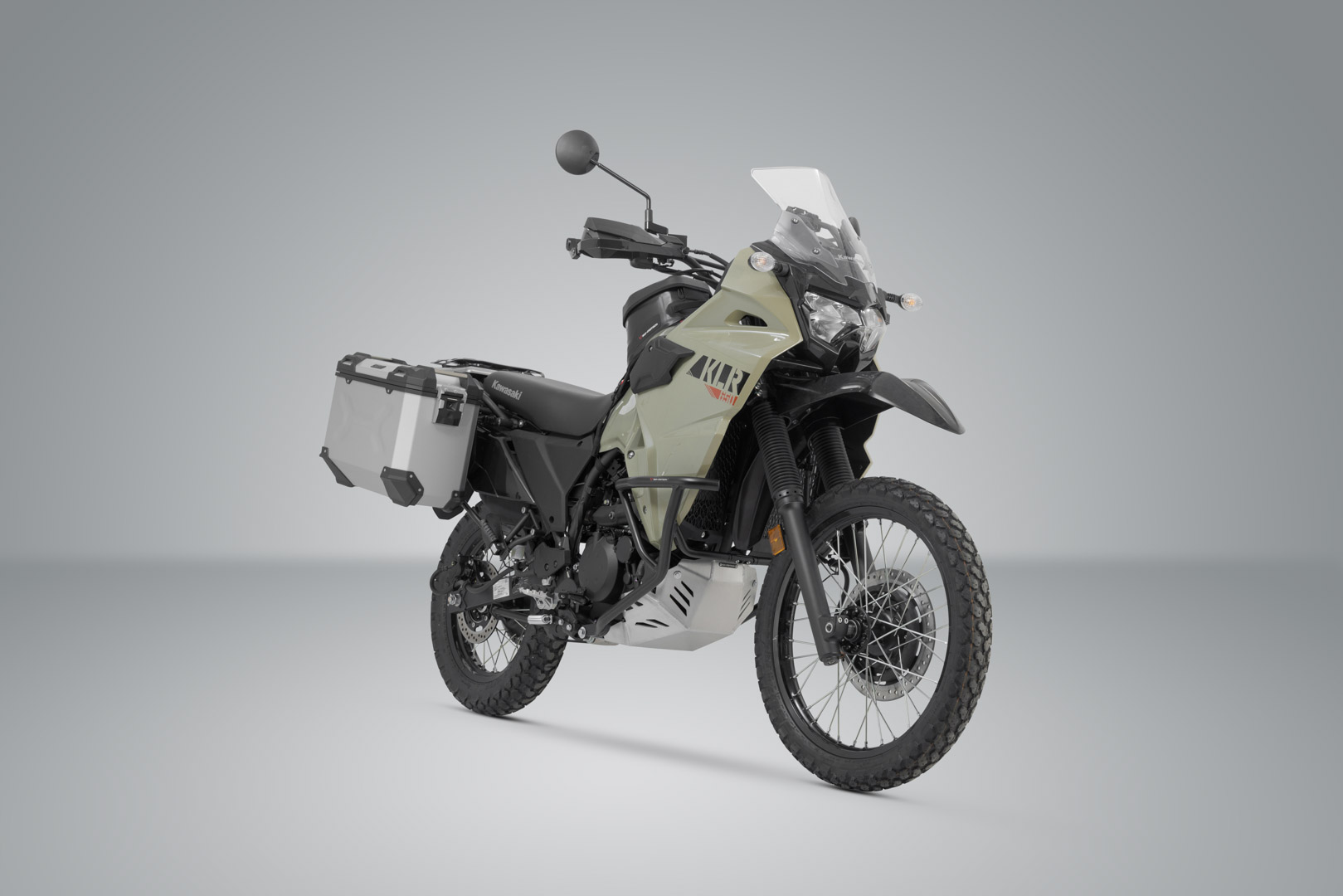 SW-MOTECH baut das silberne Alukoffer-System passend für die Kawasaki KLR 650 (21-) mit den modellspezifischen PRO Seitenträgern, die extrem belastbar sind.