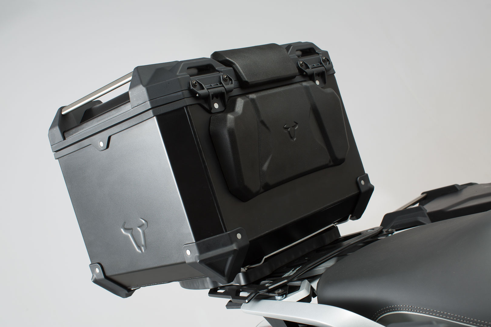 Die untere Rückenlehne mit einer großen Auflagefläche und das obere Teil an der Deckelkante bieten eine Extraportion Sitzkomfort. Auch das Verzurren von weiterem Gepäck ist nach wie vor möglich; die Zurrösen sind dank der Form der Sozius-Rückenlehne weiterhin zugänglich.