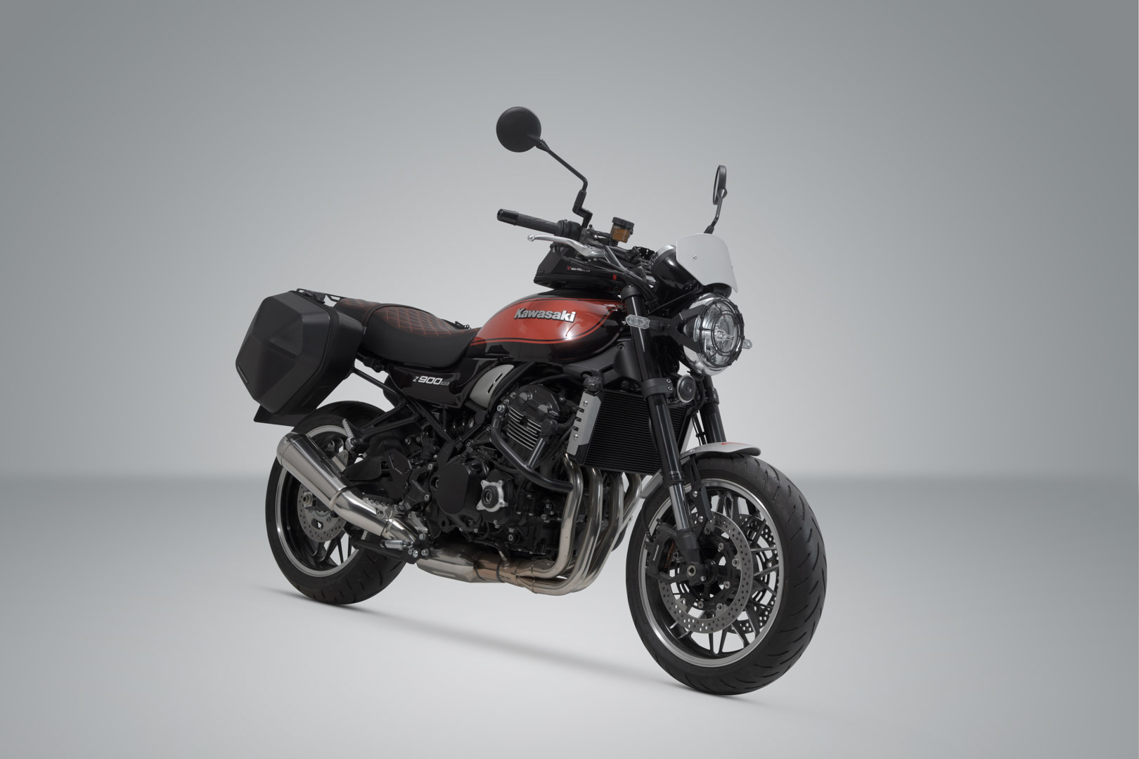 Mit dieser Kombination von SLC Seitenträgern und den URBAN ABS Seitenkoffern macht SW-MOTECH die Kawasaki Z900RS startklar für längere Ausflüge mit mehr Gepäck.